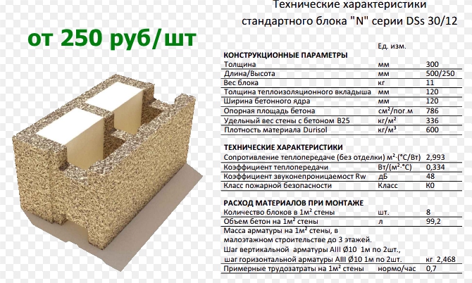 Пели ребята про супер экологичность, теплопроводность, но, простите, я без слёз не мог слушать. Всё переводилось в метрах квадратных, мол такая-то цена за квадрат или за штуку, но я-то знаю эти уловки, за квадрат, за метр погонный, как только не дурят нашего брата. Когда я задал прямой вопрос: сколько стоит 1 метр кубический? Наконец услышав ответ — 100 евро за куб. Я чуть не упал. Теперь объясню почему. За всю экологичность Дюрисола отвечает опалубка из арболита, ведь только благодаря арболиту у него есть такие качества, но, без боли не могу смотреть на этот конечный продукт после того как в него добавили нелюбимый мною пенопласт и всё это планируется заливать бетоном! Зачем господа? Зачем портить арболит? Ведь экономика Дюрисола проста: навар 200%.
