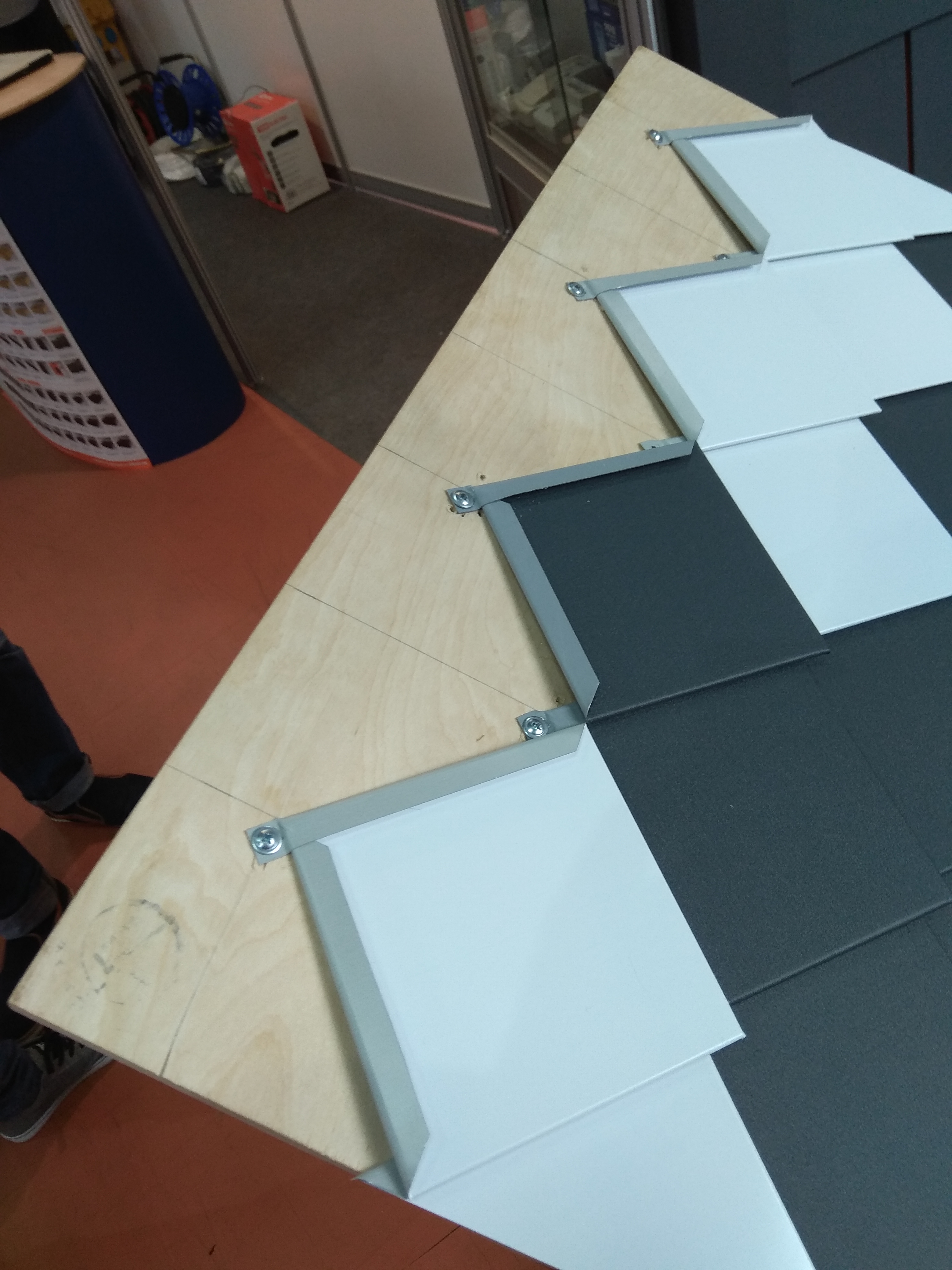 Далее, встретил интересный материал для кровли. Крепиться весьма просто, но выглядит достаточно эффектно и, пожалуй, прослужит долго из-за технологии производства. Сделаны края как у автомобилей — загнуты, чтобы вода не попадала, а если и пойдёт небольшая ржавчина, то её не будет видно. Металл российский, чуть позже напишу чьё производство.