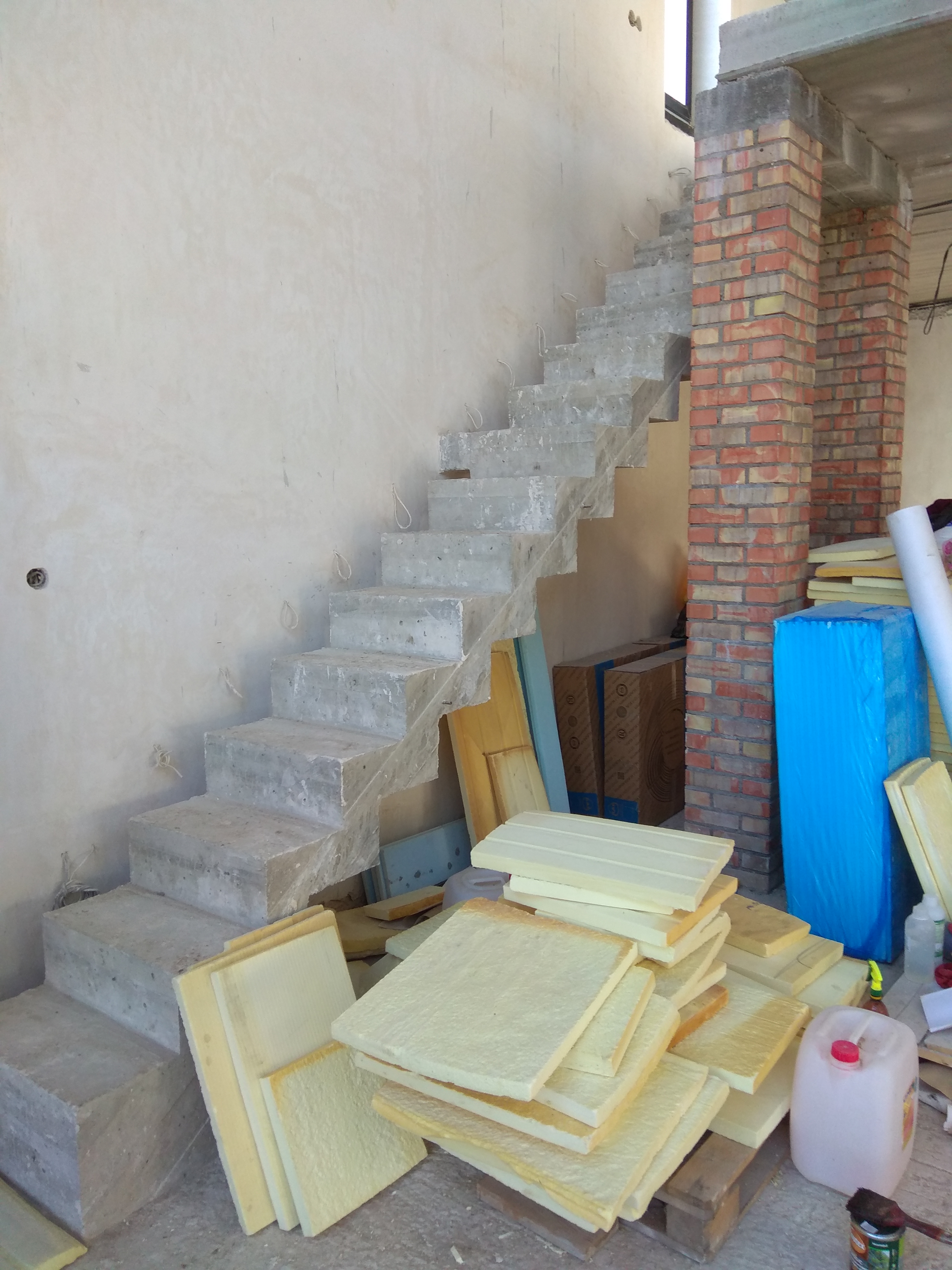 Основание для отделки здесь решили сделать из гипсовой штукатурки с нанесением машинным способом. Я буду делать иначе, т.к. очень дорого вышло, да и гипс будет держать влагу. Я скорее всего покрашу арболит просто в белый цвет, если жена не выгонит из дома конечно))