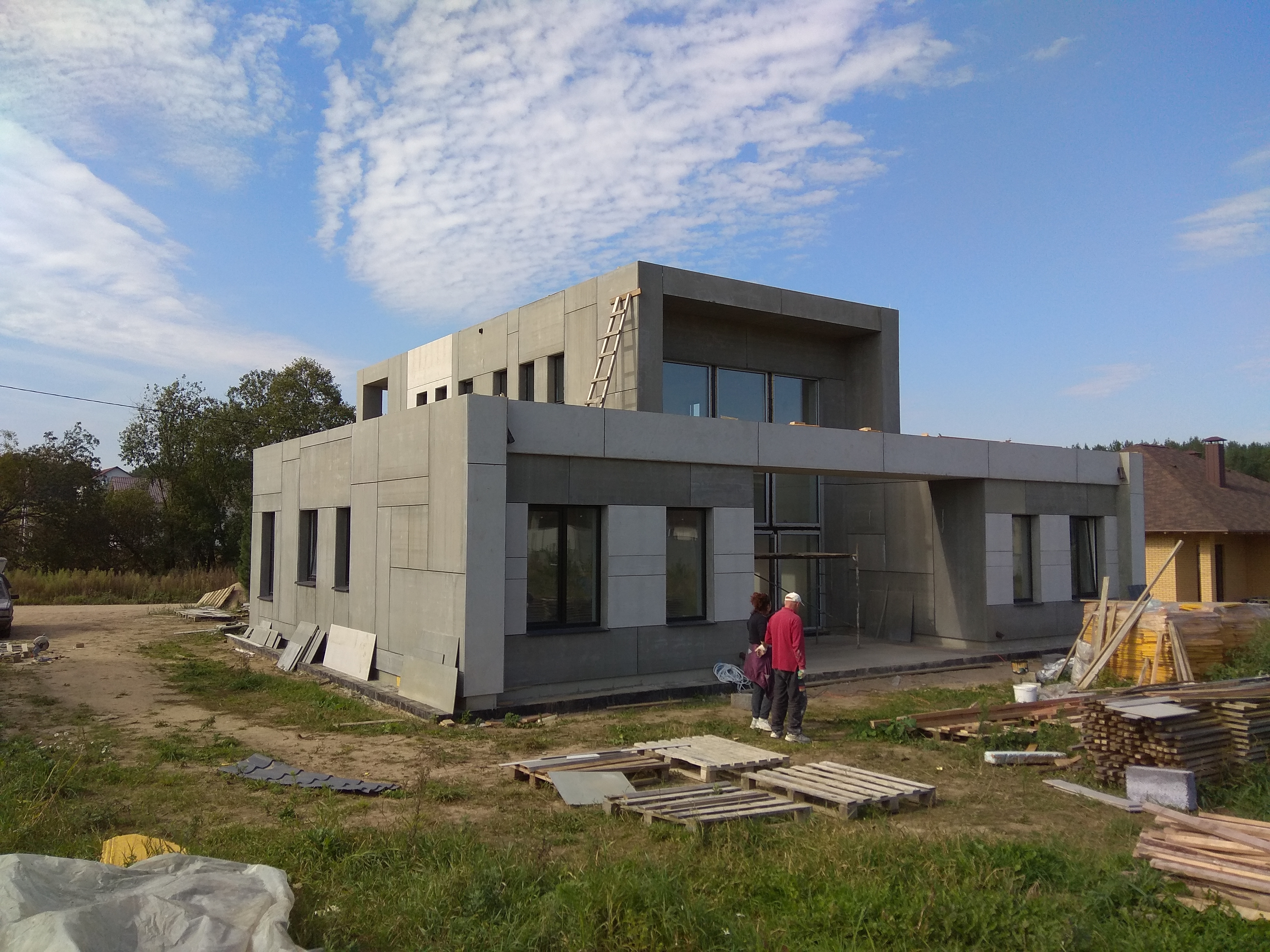 Здесь уже сделана кровля, облицовка ЦСП, ч